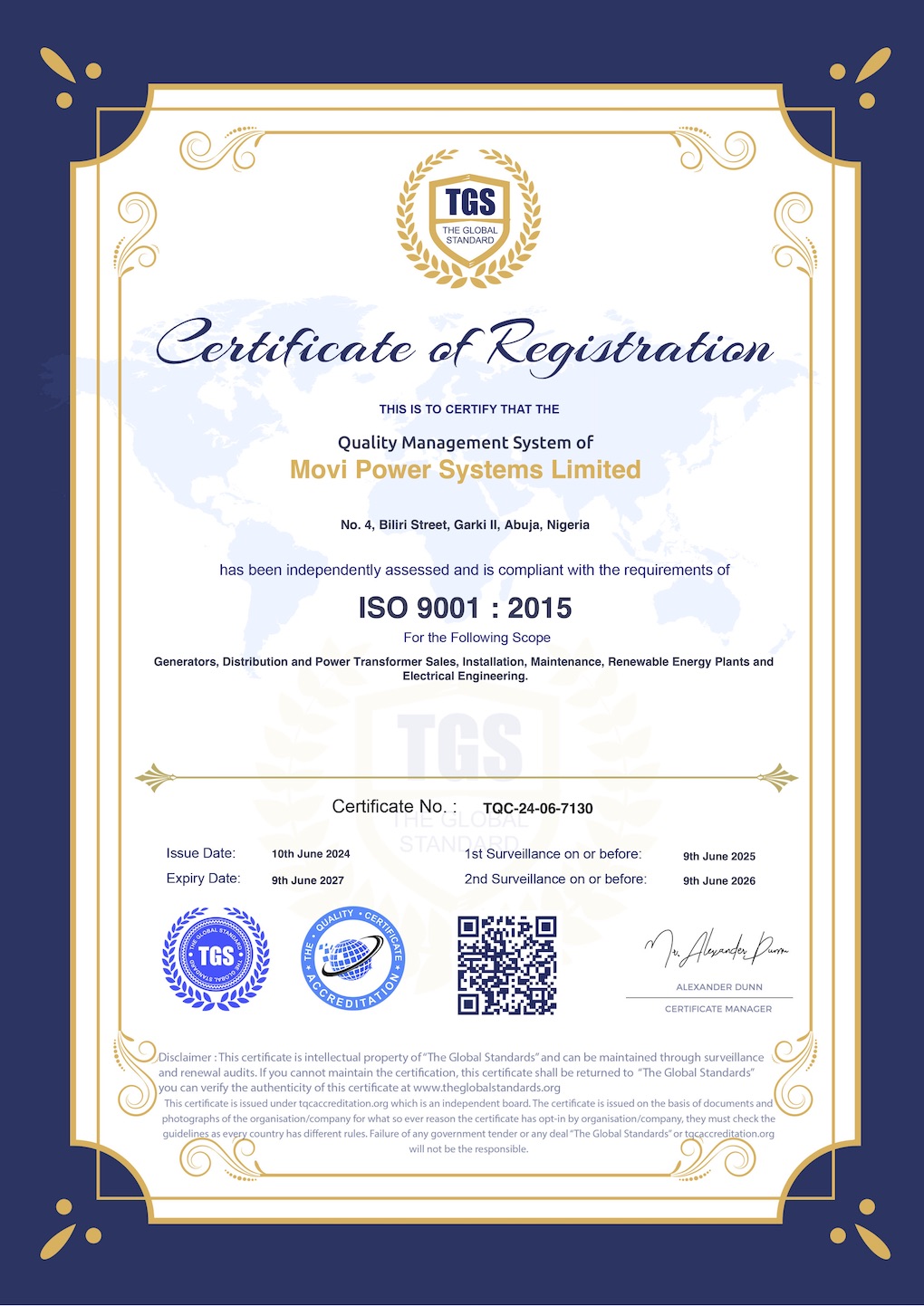 Movi Power gets Quality Management ISO 9001 : 2015 Accreditation